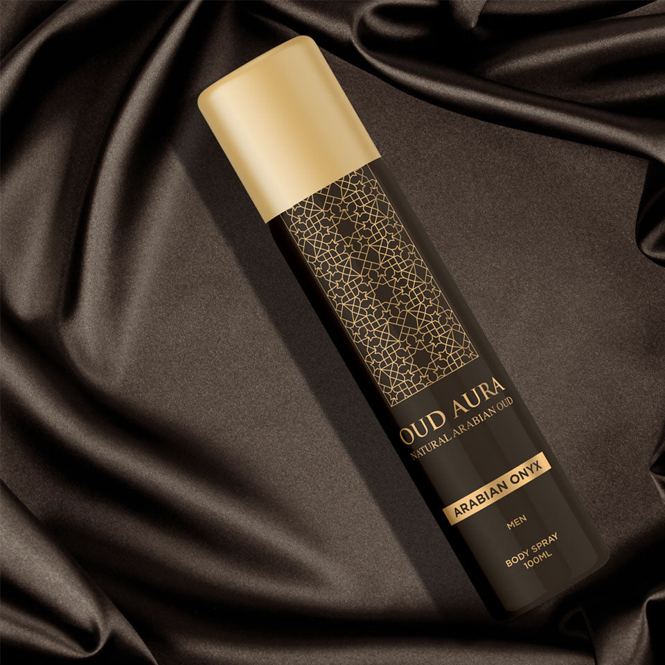 Gracing the desert with your beauty and strength, Arabian Onyx Body Spray by Oud Aura embodies endurance and fortitude. Inspired by a revered Arabian creature synonymous with power and grace, this fragrance opens with bright bergamot and musky amber, followed by a refined heart of geranium and a touch of warming cardamom. It settles into a rich base of creamy sandalwood and flowery musk, delivering a bold yet elegant finish.