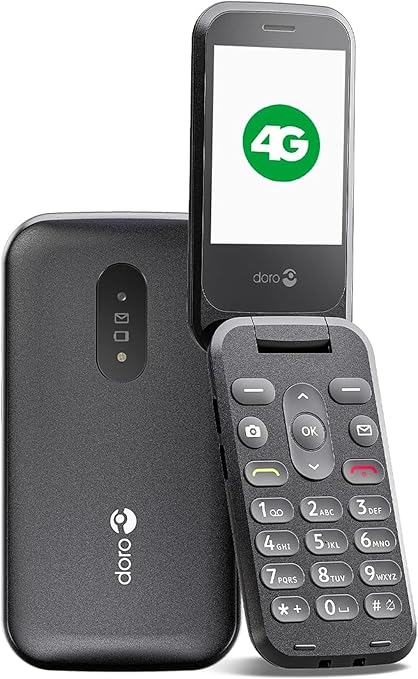 The Doro 2800 is a flip (clamshell) 4G feature phone designed for simplicity, safety, and ease of use. It comes with a large 2.8-inch 320×240 display, separated high-contrast keys, and a visible ringer indicator to help with clarity in low light — ideal for seniors or anyone who values simplicity.