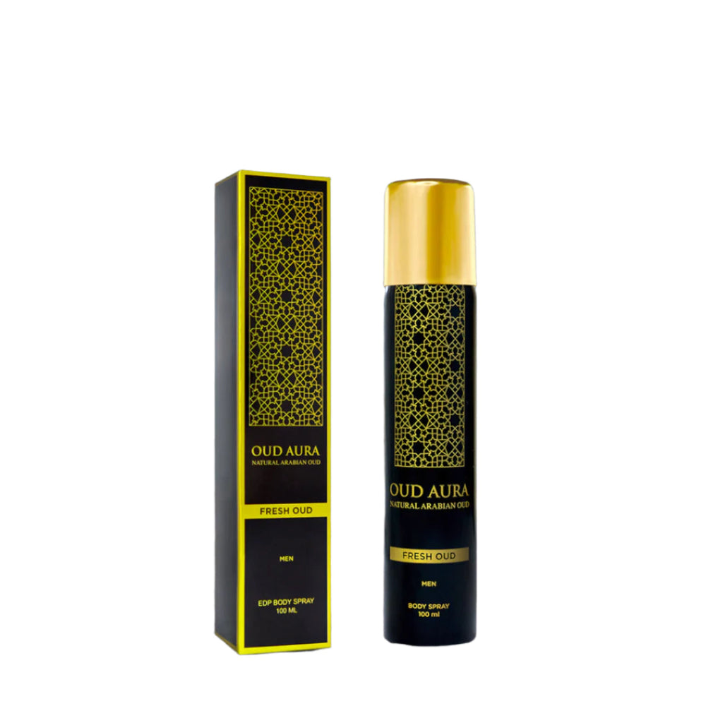 Experience the embodiment of Arabian allure with Fresh Oud Body Spray by Oud Aura. Crafted to evoke the timeless charm of souks, malls, and mosques, this fragrance opens with bold and warm top notes of leather, amber, and saffron—creating an irresistible masculine aura. The heart unfolds with rich sandalwood, patchouli, and soft jasmine, adding complexity and warmth to the blend. It settles into a smooth, refined base composed of cedarwood, vanilla, and tonka bean, delivering an elegant, long-lasting finish.