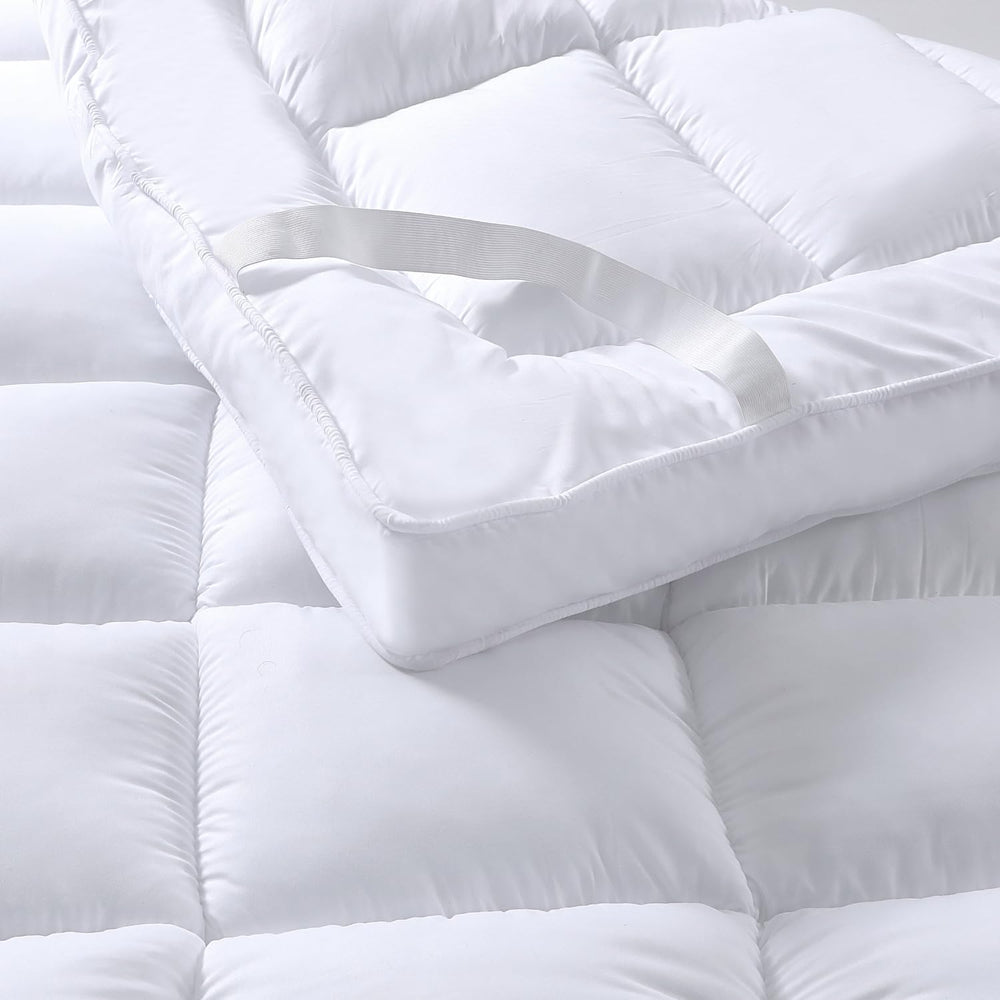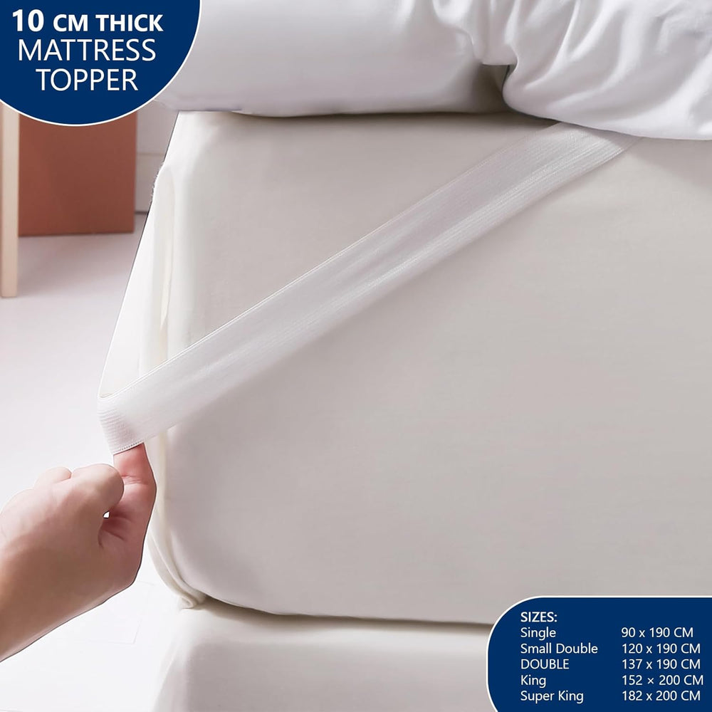 Upgrade your sleep instantly with the Luxury Quilted Mattress Topper, designed to add a generous 10 cm / 4-inch plush comfort layer to your existing mattress. Crafted to deliver the ideal balance of softness, support, and breath-ability, this topper enhances pressure relief and helps improve sleep comfort without the expense of replacing your mattress.