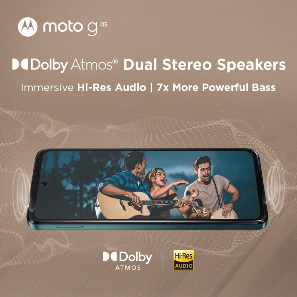Meet the Motorola G05 — a dependable everyday smartphone with style and substance. Its 6.67-inch display supports a 90 Hz refresh rate and delivers brightness up to 1000 nits, protected by Corning® Gorilla® Glass 3. The device features a sleek vegan leather back, IP52 water-repellent design, and refined build.