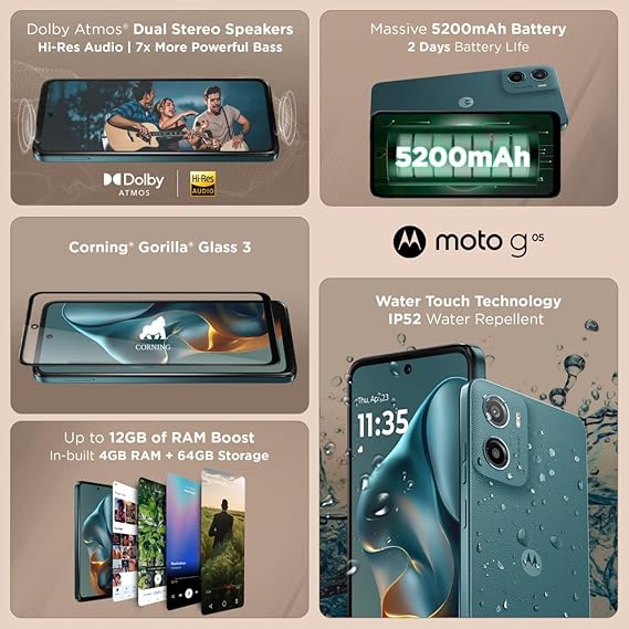The 5200 mAh battery keeps you going for up to 48 hours in typical use, and the fast 18W charging helps you get back on track quickly. Running Android 15, the G05 offers a clean and modern software experience.