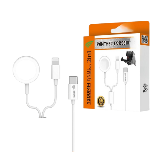Simplify your charging routine with the Panther Force 2-in-1 Watch Charger. Designed for convenience and efficiency, this versatile charger features an extended length, making it easy to charge and sync your phone and smartwatch simultaneously. Combining functionality and practicality, Panther Force delivers a seamless charging experience.