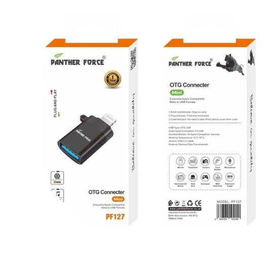 The Panther Force Mini OTG Connector is the perfect tool for expanding the functionality of your smartphone or tablet. Whether you're transferring files, connecting peripherals, or accessing external storage, this compact and reliable OTG adapter ensures seamless performance.