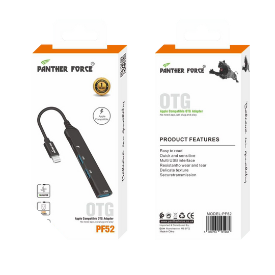 Experience the versatility and reliability of the Panther Force OTG Adapter—your perfect companion for expanding your Apple device's capabilities!