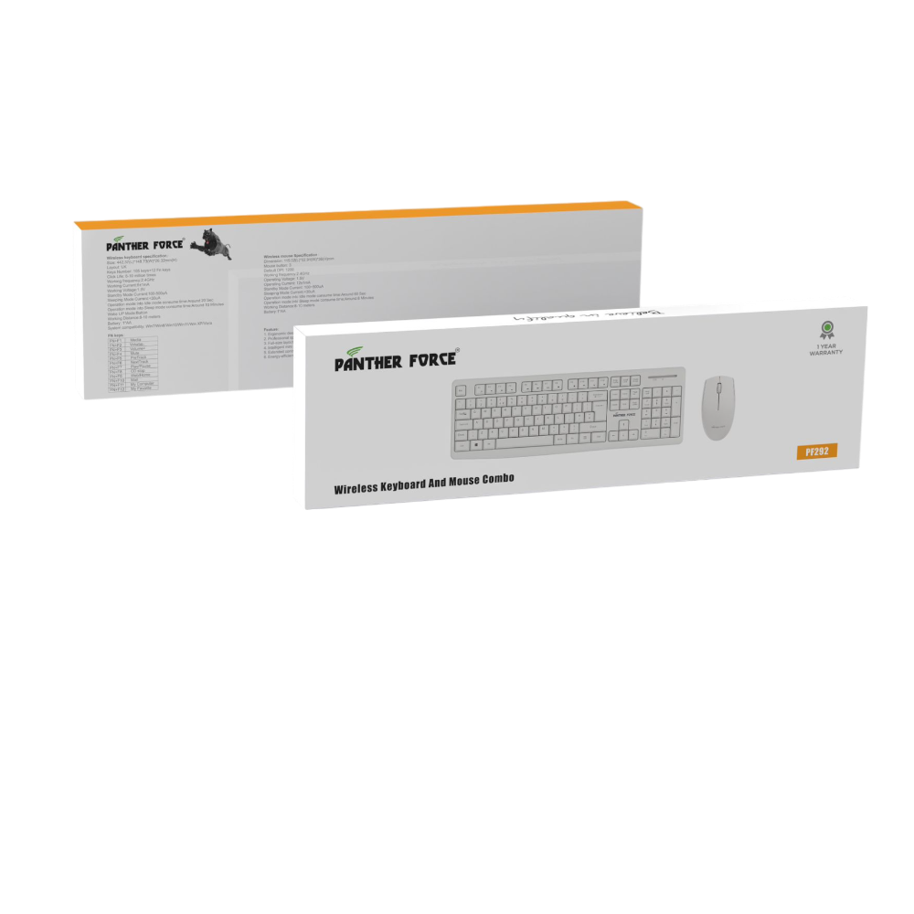 Enhance your workspace with the PF292 Panther Force Wireless Keyboard & Mouse Combo, designed to provide comfort, functionality, and efficiency. This stylish and modern combo is perfect for both professional and personal use, offering a seamless and clutter-free computing experience.