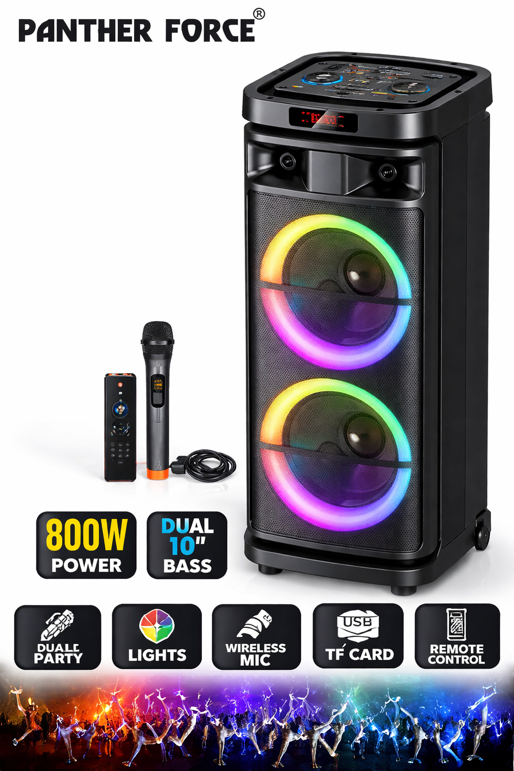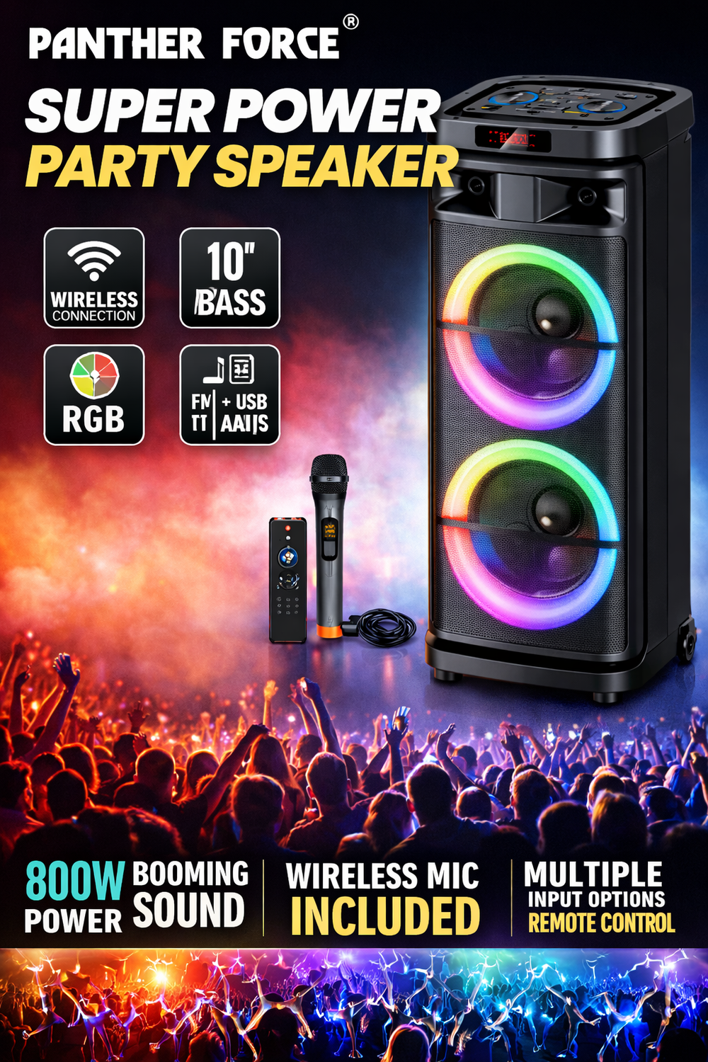 Panther Force Super Power Party Speaker Portable Wireless Speaker with RGB Lights, Karaoke & Deep Bass